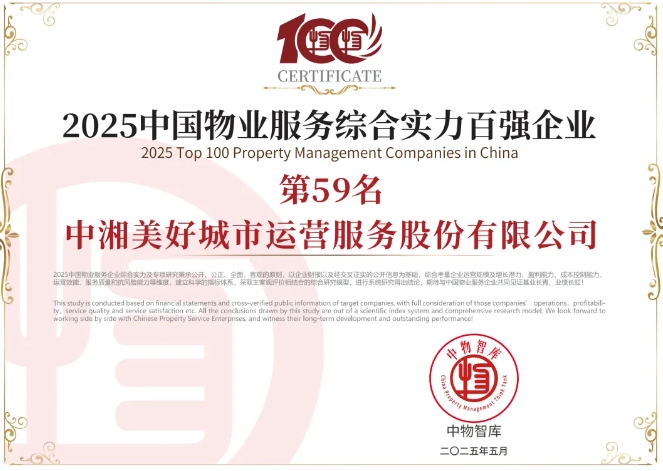公司信用評級為“AAA”,蟬聯“中國物業服務企業100強”“中國物業國有企業50強”等稱號,先后榮獲“中國城市服務優(yōu)秀品牌企業”“中國智慧城市服務領先企業”“中國特色物業服務領先企業”“全國青年文明號”“湖南省文明標兵單位”等國家級、省部級榮譽。